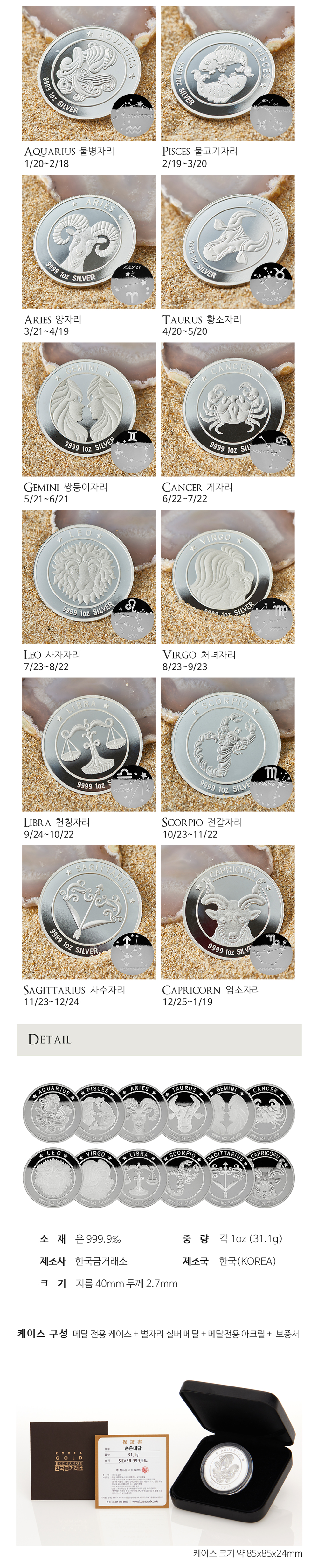 1온스 황도 12성좌 별자리 실버 불리온 메달
